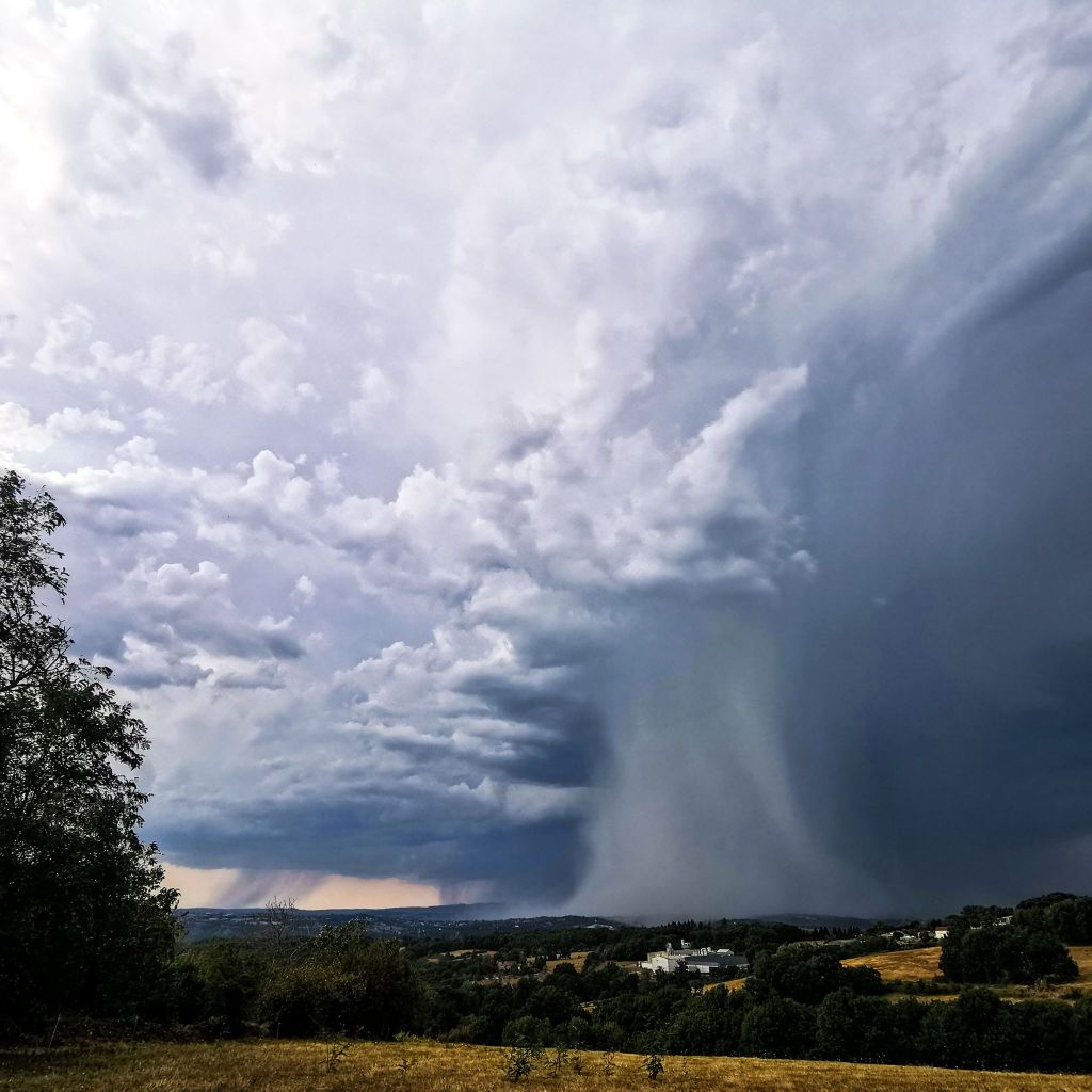 Le lundi précédent, en fin d’après-midi, du même endroit mais dans la direction opposée, on aurait vu cette tornade descendant la vallée du Célé et tordant des platanes dans les rues de Figeac.