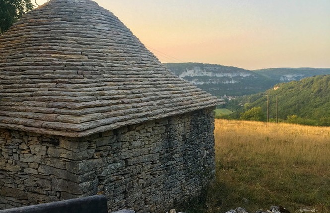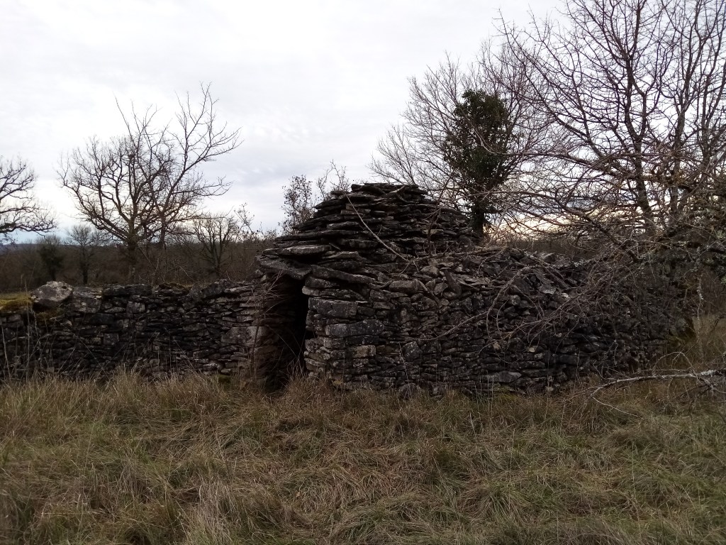 Sur la photographie, un abri de pierre sèche comme il en existe des centaines sur les Causses du Lot. Plutôt gariotte que caselle, les deux termes désignant dans cette grande famille des abris de pierre sèche, le premier plutôt de petits édifices, assez simplement constitués ; le second des constructions plus amples, élaborées et d’une grande diversité de formes. Les premières servaient davantage aux animaux qu’aux humains, les seconds plutôt aux humains.