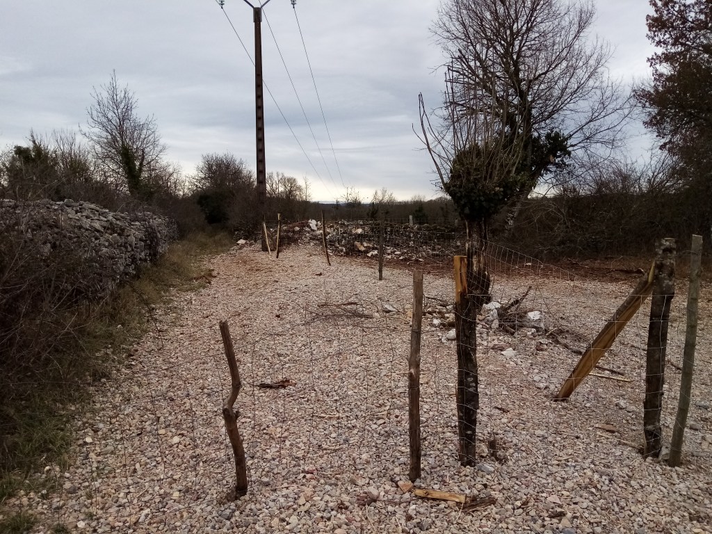 A cent mètres de la gariotte photographiée, un agriculteur a écrasé et pulvérisé le mur de pierres sèches bi-séculaire qui séparait la parcelle d’un chemin de causse. Il a ensuite fiché dans le sol des poteaux qui soutiennent un grillage à moutons, de telle sorte que le chemin public est coupé. Une façon de faire plus adaptée à la constitution de longs parcours de pâture et au temps disponible pour cet agriculteur. Un autre rapport aux éléments aussi.