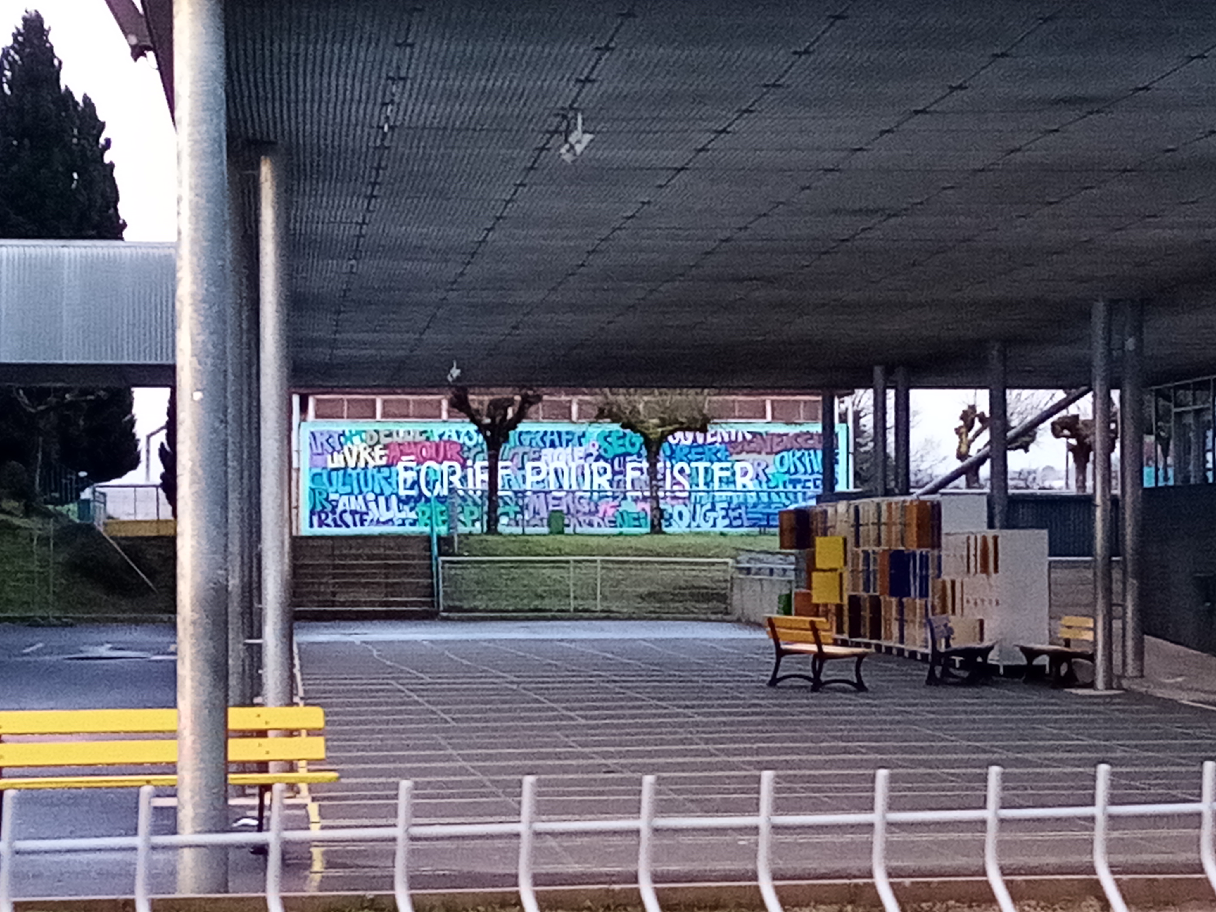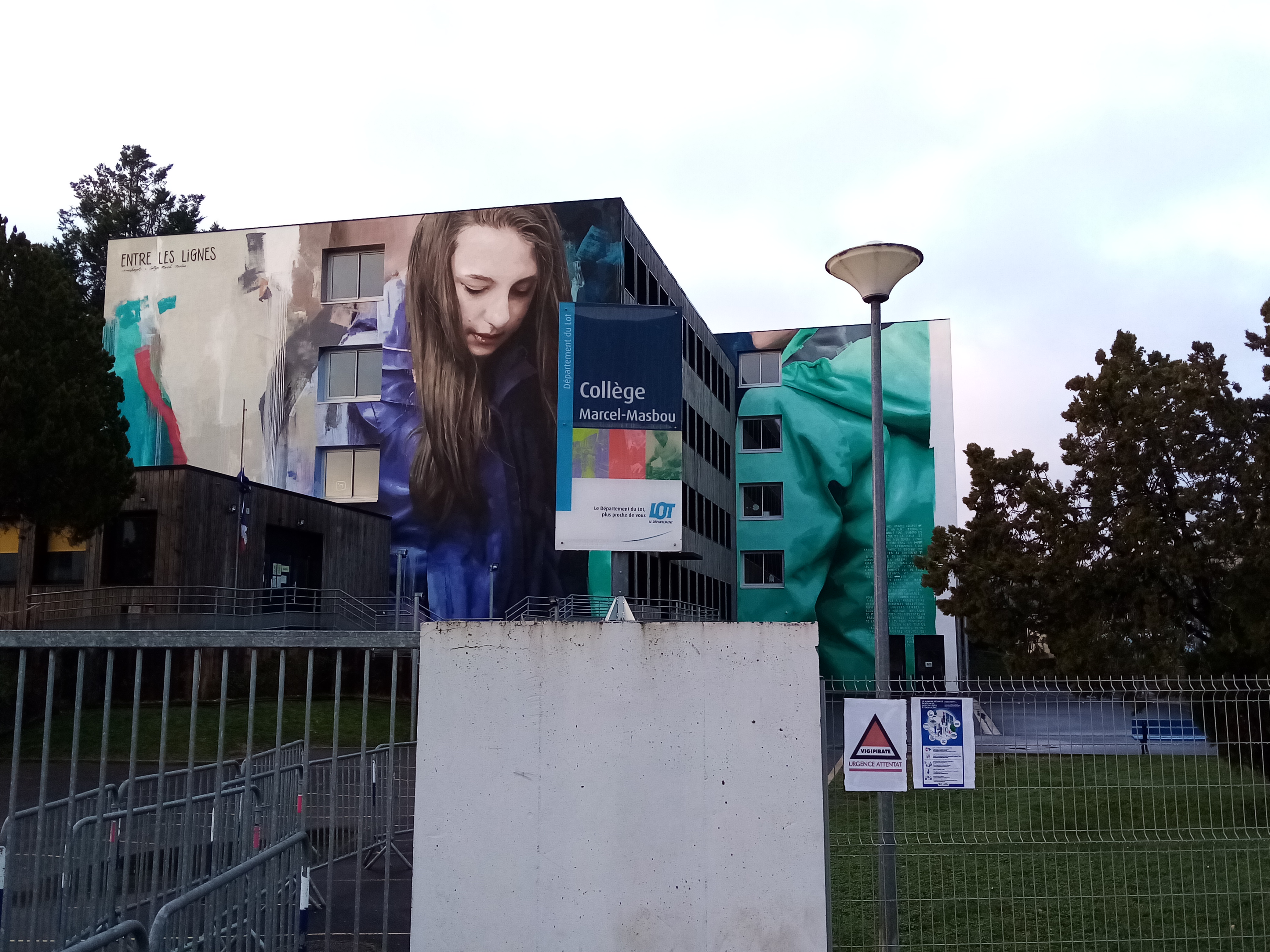 C’est le collège Masbou. La fresque porte un titre : Entre les lignes.