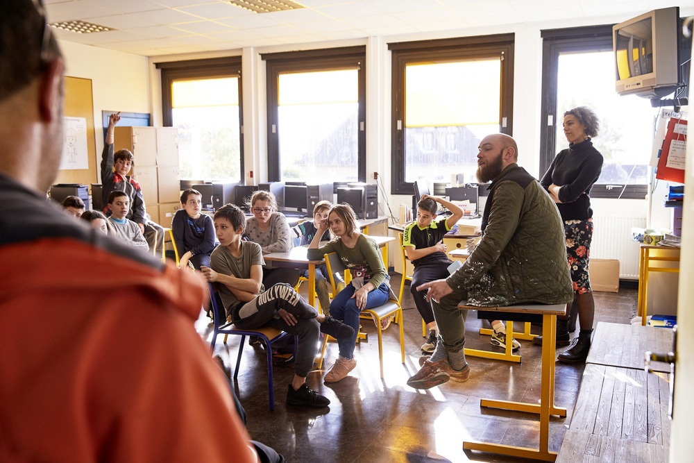 Tout d’abord, merci d’être venus faire la fresque avec les 6°et les 5° SEGPA. Merci de nous avoir considérés comme tout le monde, c’est-à-dire pas comme des personnes qui ont des problèmes.