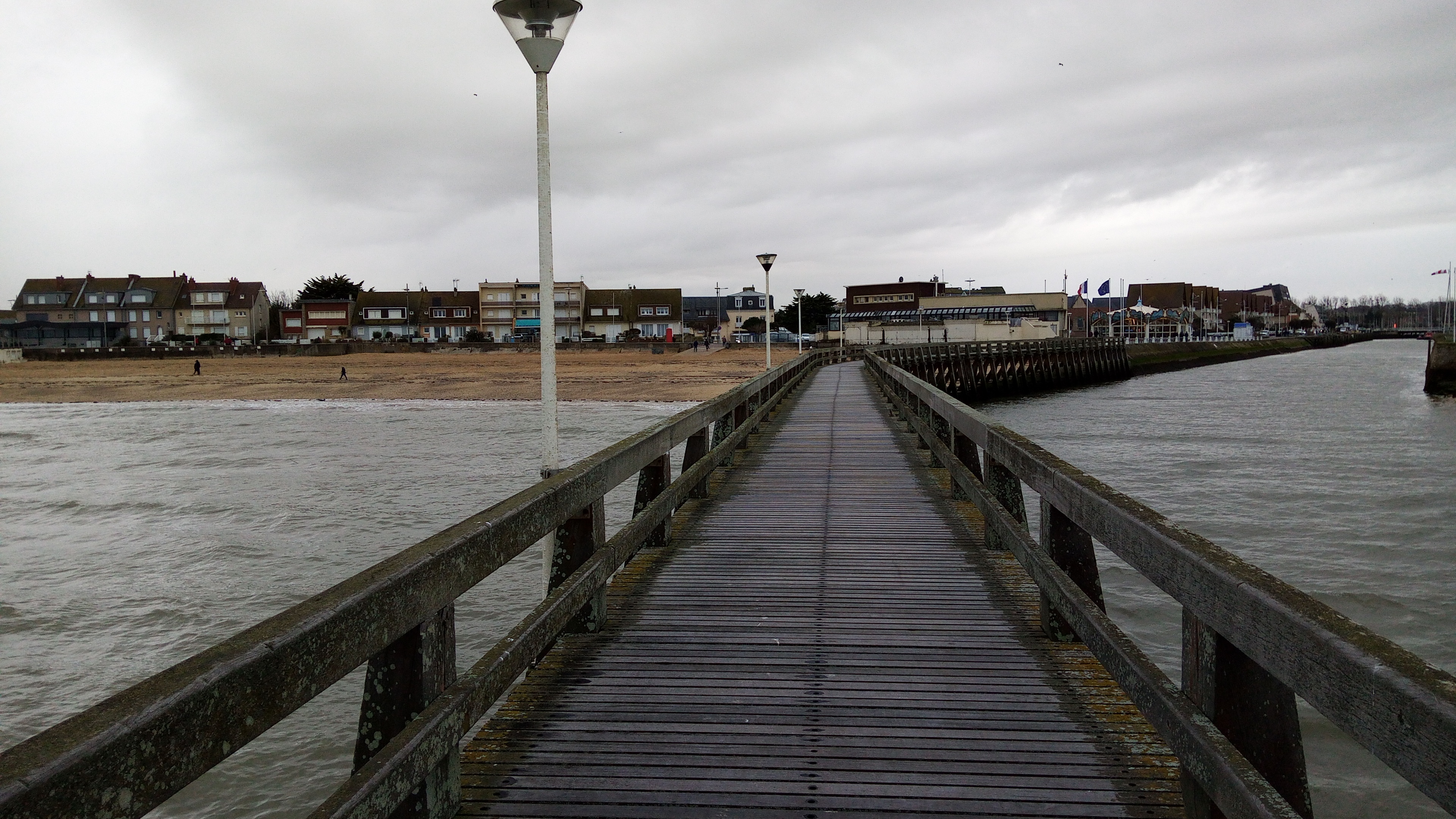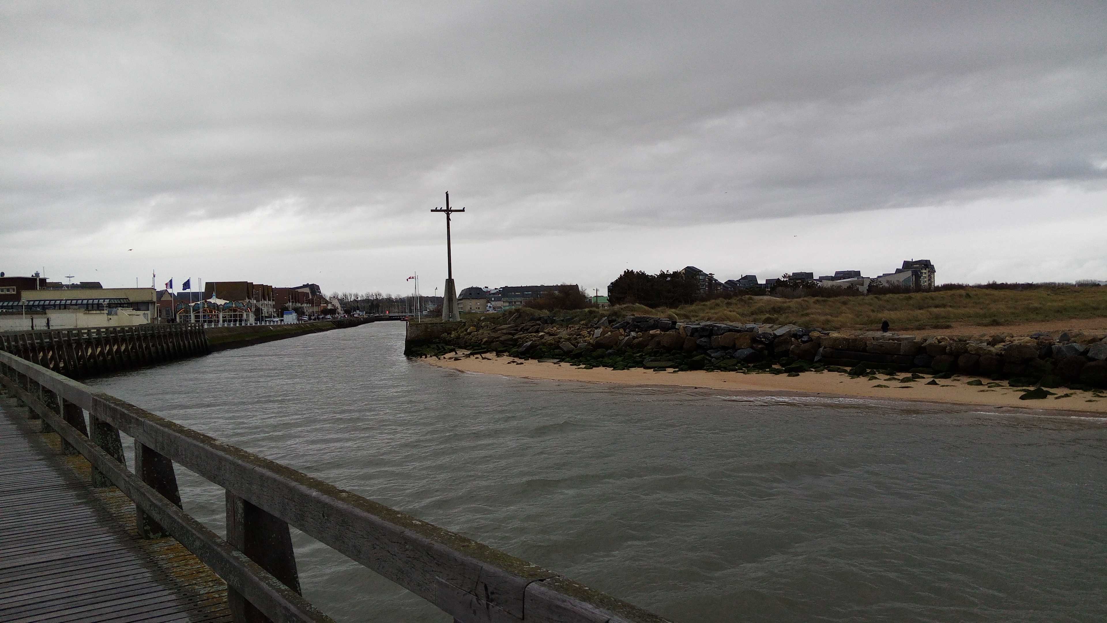 Il fait mauvais temps ce samedi après-midi du début février 2021 à Courseulles-sur-Mer. De la pluie, du vent, du froid pas encore polaire, mais on le sent arriver.