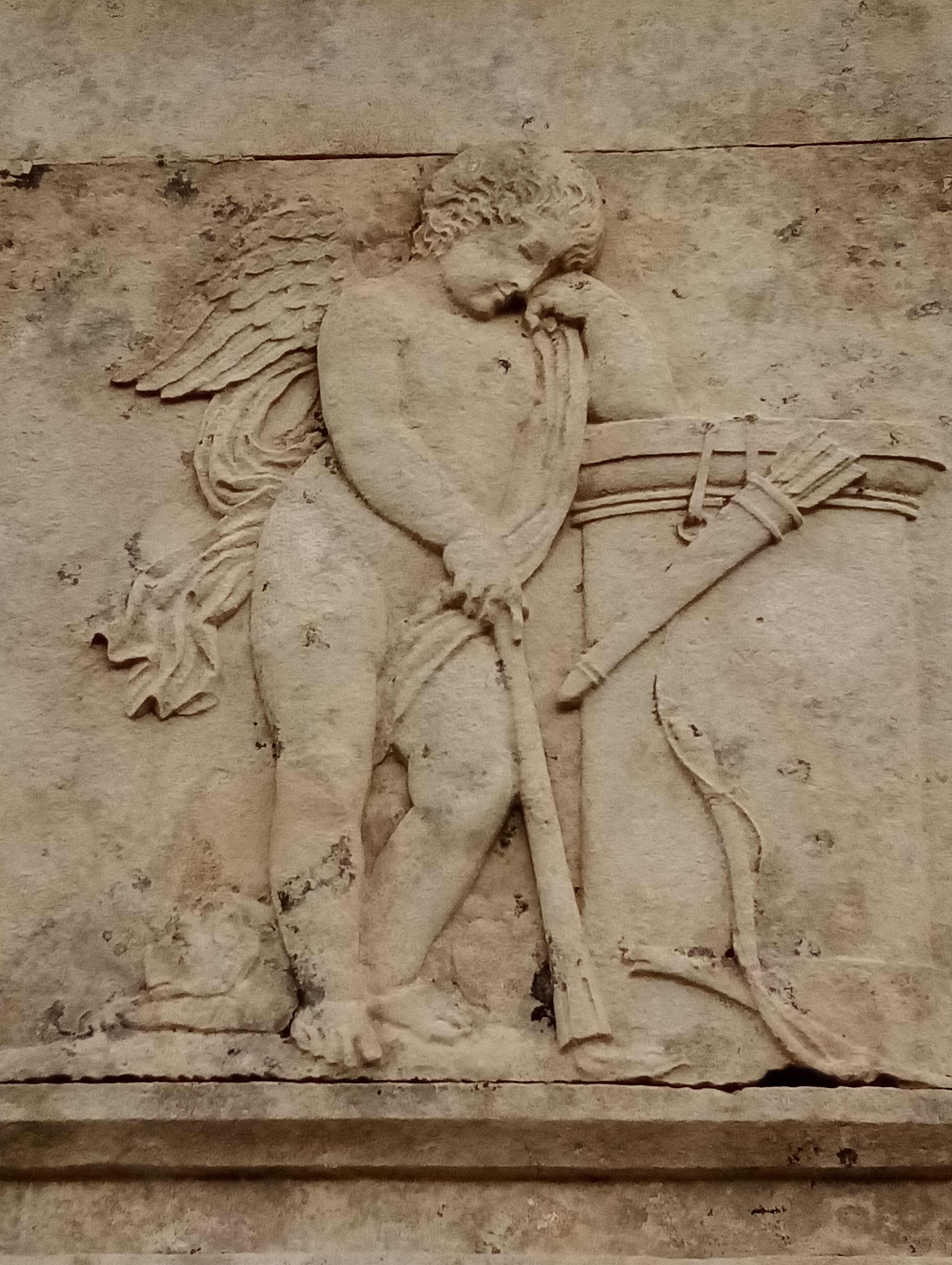 Sur la face est du tombeau, Marie Joly est représentée endormie. Les muses de la comédie (Thalie) et de la tragédie (Melpomène) l’encadrent. Sur le côté Sud, Eros, l’amour, dépose son arc et son carquois. Sur le côté Nord, seul et sans ses attributs, il paraît condamné à errer sur la lande du Mont Joly.