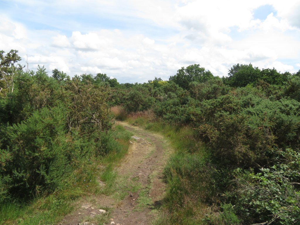 Venant du bourg de Potigny, la promenade qui démarre parallèlement à l’axe de ce petit massif y pénètre ensuite, nous faisant entrer dans un « morceau d’Armorique » (voir cette lande sur la photographie ci-dessous).