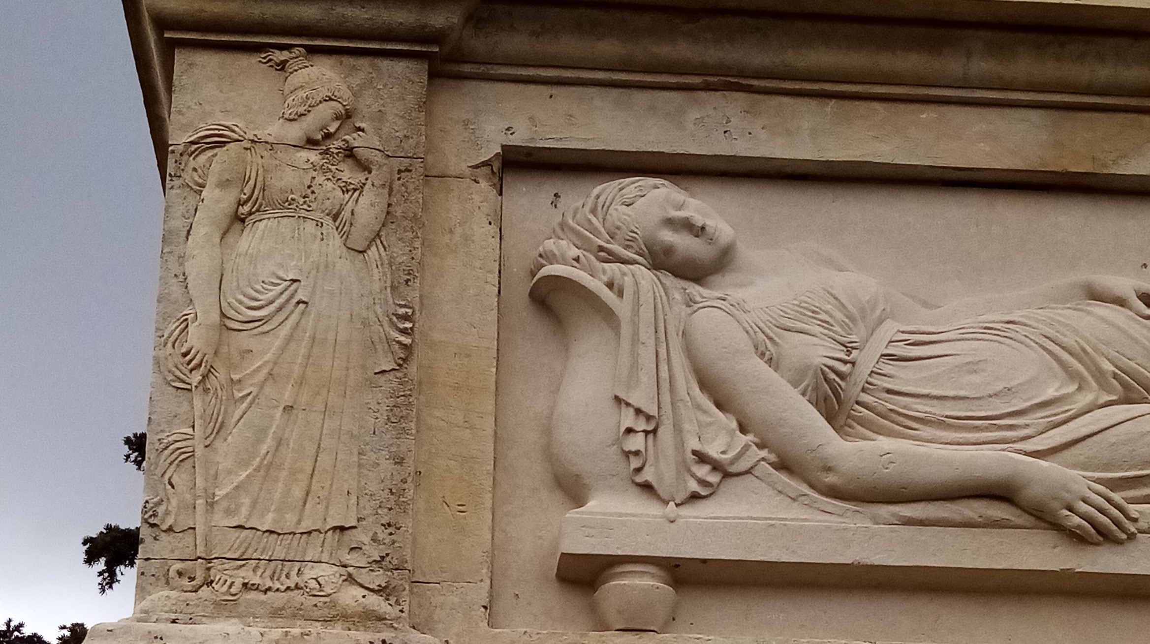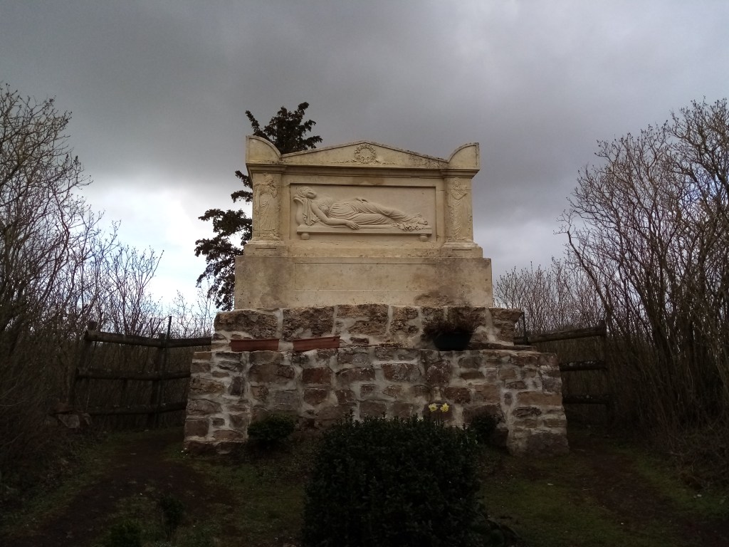 Lorsqu’elle meurt précocement, ce dernier fait édifier un tombeau, remarquable pour son caractère monumental, mais aussi pour situation et la composition paysagère dont il est l’élément central (voir photographie ci-dessous).