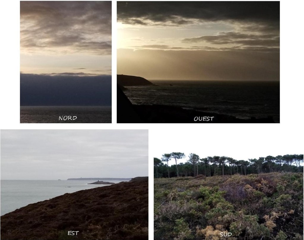 S’orienter, l’Est d’abord, l’Ouest dans la foulée, puis le Nord et le Sud. Exercice de géographie mentale : qu’y a t-il en avant, plus loin que ce que je vois ? Juste derrière l’horizon, puis vraiment plus loin ? Est-ce que je peux nommer des lieux, des régions ? Quelles images affluent imprécises, multiples, flottantes… Exercice d’observation, puis de géographie mentale.