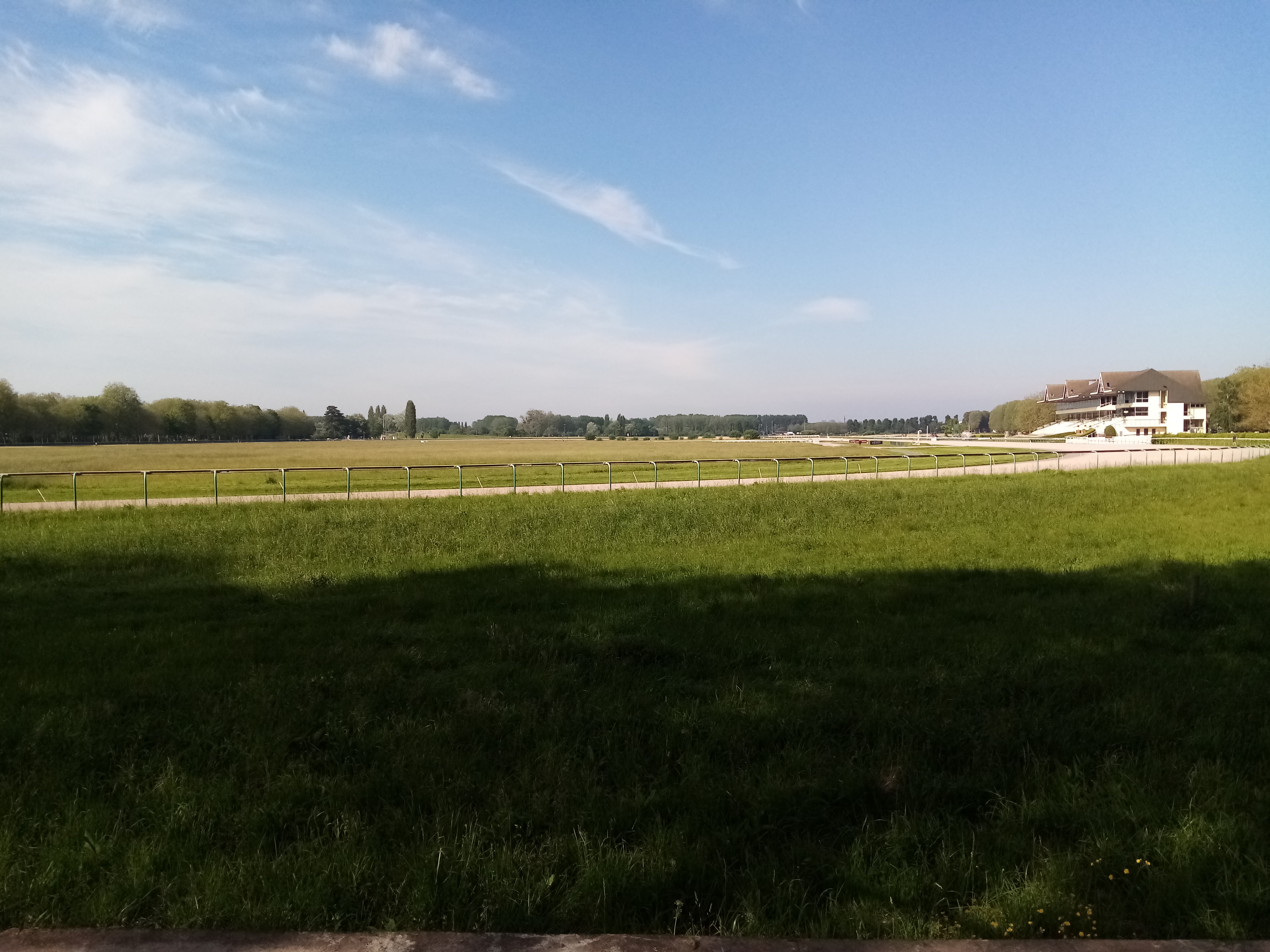 Voir ci-dessous une photographie aérienne de 2020. La zone humide se distingue au Sud-Ouest de l’hippodrome. On la voit mieux encore sur la photographie aérienne oblique, vue prise de l’Ouest.