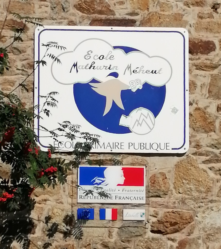 3. L’école Mathurin Méheut. L’école primaire publique, le long de la route qui descend de l’abbatiale vers la place du Martray. Son logo reprend la signature du peintre originaire de Lamballe (1882-1958). Une plaque de marbre posée en 1936 fixe quelques repères historiques de ce bâtiment dédiée à la fonction scolaire depuis qu’il y a abrité un Collège municipal en 1836.