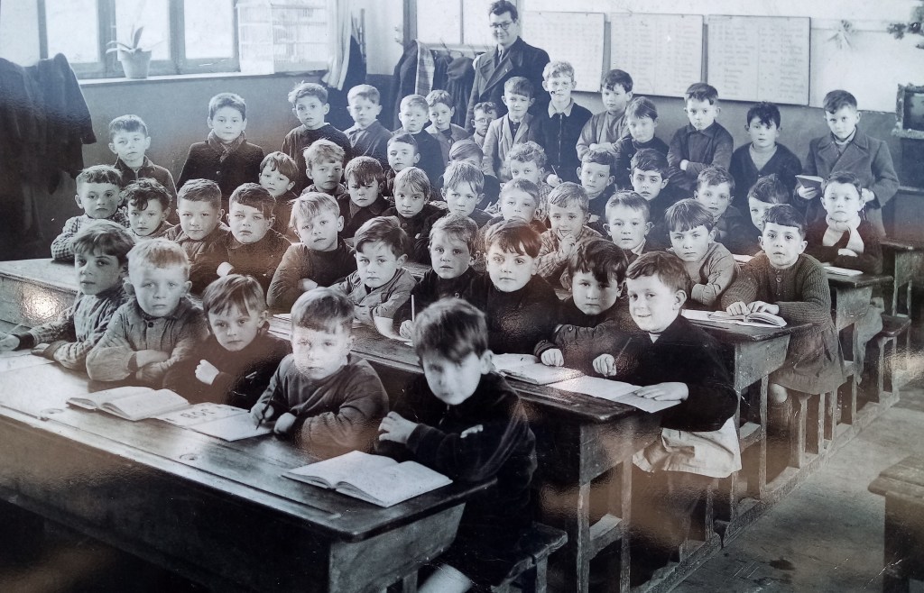 1950 : une classe d’école primaire du Sacré Cœur. Exercice : estimer la densité d’élèves par salle de classe spéciale dédicace à Pascal Clerc.