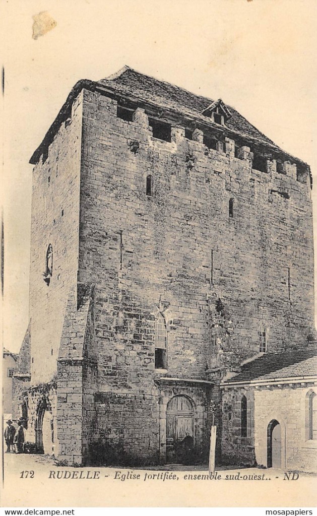 Eglise Saint-Martial à l’origine chapelle de l’hôpital, seconde moitié du XIIIeme siècle. Construite peu après la création de la bastide de Rudelle vers 1250. Très restaurée fin XIXe siècle par un architecte (Paul Gout) qui a fait remplacer la toiture par des bretèches qui accentuent nettement son caractère d’église fortifiée.