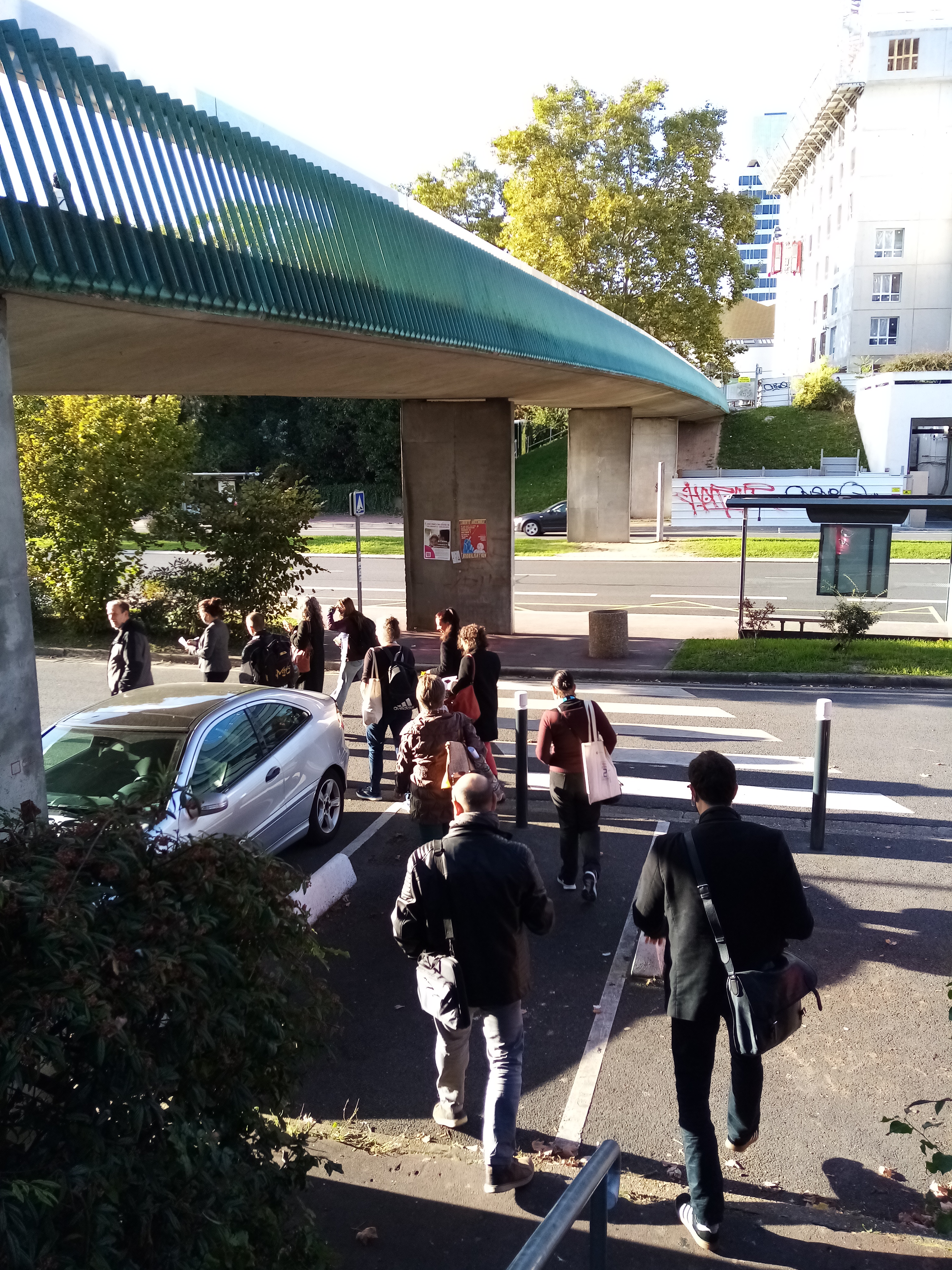 Cette collecte est orientée par ma pratique d’une autre ville conçue à deux circulations séparées, automobile et pédestre : Hérouville Saint-Clair. Les automobiles ne rentrent pas dans les quartiers ; elles les desservent au moyen d’axes qu’enjambent les passerelles piétonnières qui assurent les liens entre ces quartiers où la mobilité est également pédestre.