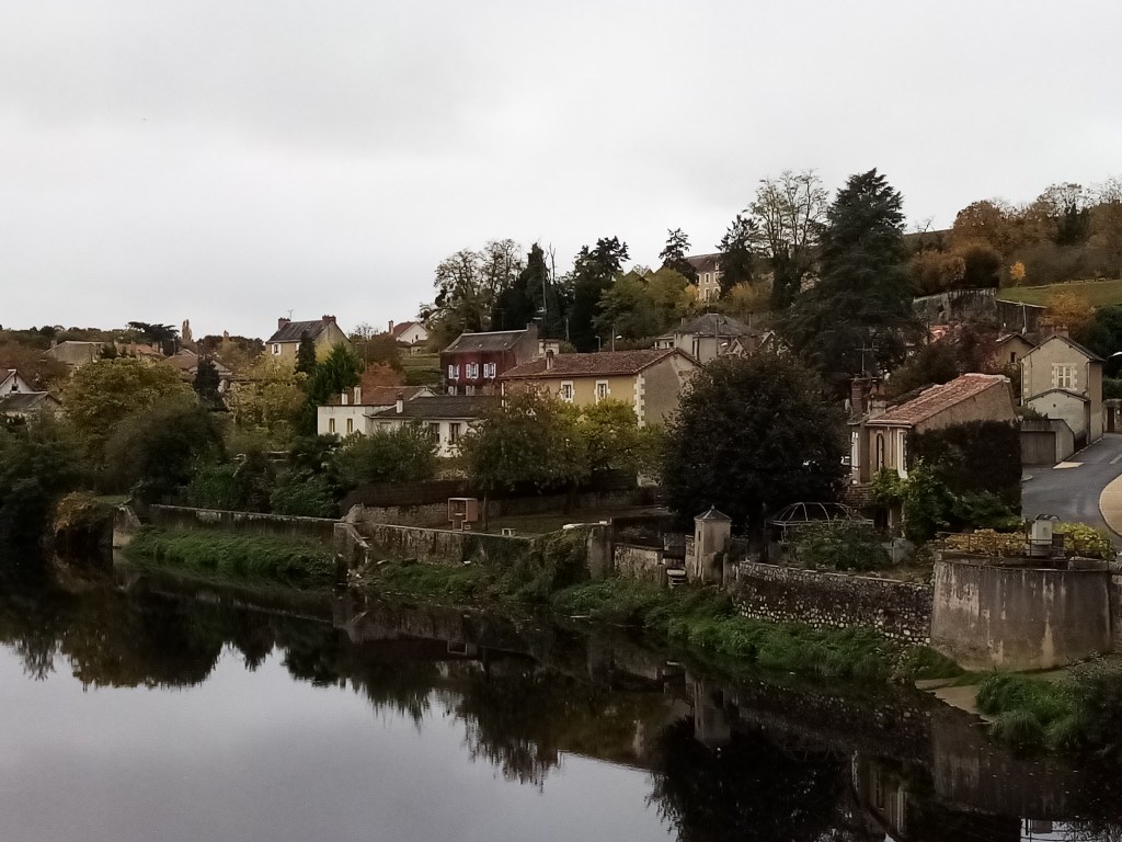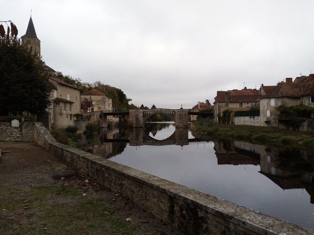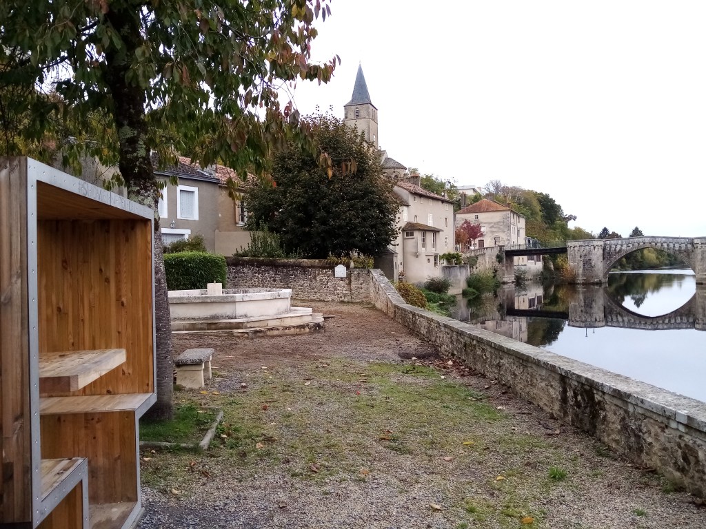 Une halte à Montmorillon (Sud-Vienne), un petit espace identifié depuis le Vieux Pont comme pouvant accueillir l’automobiliste en transit. On se rapproche.