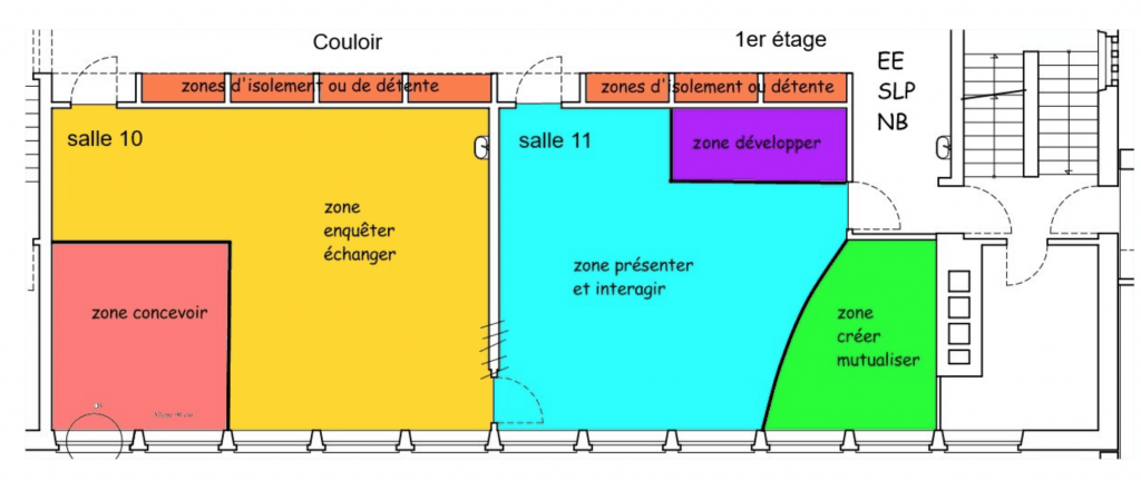 Forticlasse fonctionne depuis 2019. Le questionnement sur les usages des zones de cet espace bénéficie du travail de recherche conduit avec Sylvain Connac. Le protocole de recherche prévoyait deux séries d’entretiens avec les élèves, qui ont été conduits en décembre 2019 et février 2020. Les premiers entretiens permettent de faire évoluer l’espace Forticlasse tandis que les seconds visent permet de faire évoluer l’espace et le second entretien (autoconfrontation simple) vise à comprendre comment les élèves se saisissent de cet espace ré-agencé.