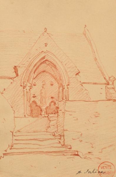 Sa silhouette massive et son enclos ont suscité au moins trois types d’interprétation : dans une veine romantique, celle d’Eugène Isabey (1803-1886) [voir ci-dessous : peinture et sanguine représentant le portail de l’église] ; dans une veine pré-impressionniste (type école de Barbizon), celle d’Antoine Guillemet (1843-1918) [voir ci-dessous peinture et dessin] ; dans une veine plus « régionaliste », celles de Mathurin Méheut (1882-1958) ou encore Yvonne Jean-Haffen (1895-1993).