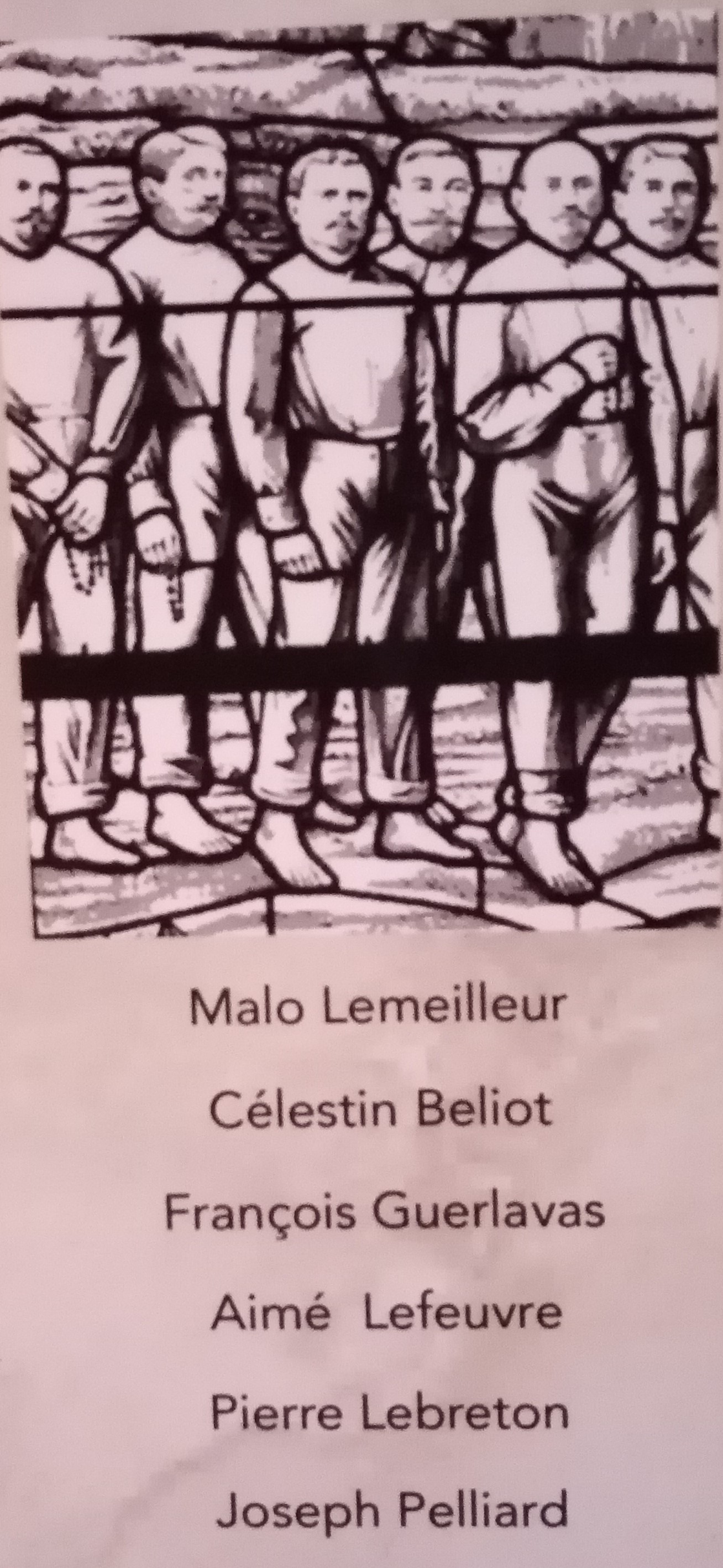 Dans ce « coin », un vitrail représente la procession des marins sur la grève de Sant-Suliac. Financé par les patrons pêcheurs et les capitaines, il a été posé en témoignage de reconnaissance après la campagne de pêche de 1910 où les disparus à Terre-Neuve furent nombreux, mais dont revinrent tous les Terre-Neuvas de Saint-Suliac. Les noms des personnages représentés sont indiqués par un panneau posé dans l’église : les portraits réalisés à la mine de plomb à partir de photographies ont en effet permis de les reconnaître.