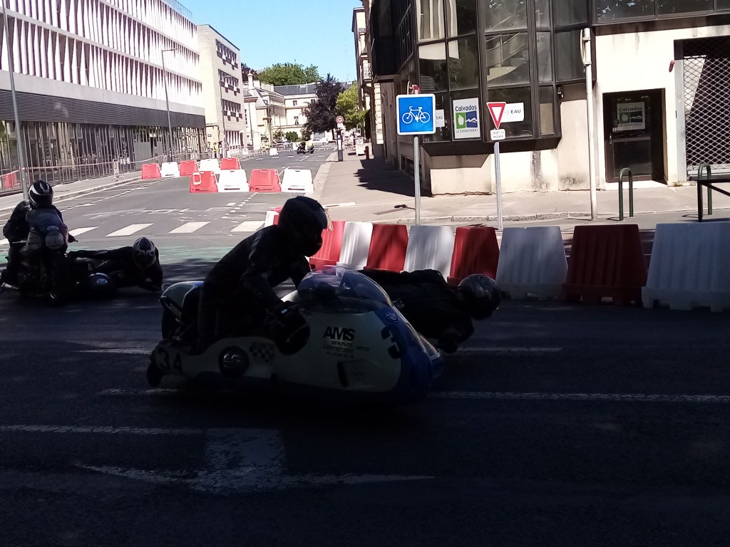 Le Retrofestival de Caen est un événement consacré aux voitures et aux motos anciennes. Parmi les animations, une série de « courses », le dimanche matin, permet à des passionnés de mécanique de faire vrombir les engins qu’ils restaurent et entretiennent le reste de l’année. Pendant trois heures, side-cars, motos, voitures et solex empruntent un petit circuit urbain en bordure de la Prairie, haut-lieu des promenades caennaises. Des spectateurs les regardent avec plus ou moins d’attention ; une partie d’entre eux applaudit, encouragée par le speaker avant le départ et après le franchissement de la ligne d’arrivée au dernier tour.