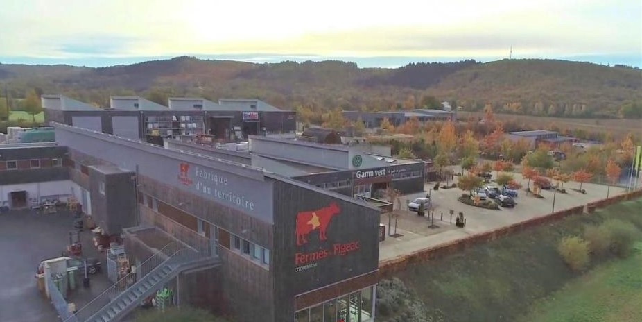 Comme sur ce semi-remorque de la « coopérative de territoire » Fermes de Figeac garé à quelques mètres de là il y a plusieurs mois. Sur la remorque : la silhouette cartographique du territoire de la coopérative inscrite dans une silhouette d’une vache. Un logo qui peut renvoyer à une carte classique (avec ses emboîtements territoriaux) et aussi une marque qui… marque le territoire, comme sur cette image du restaurant de la coopérative, ouvert il y a dix ans à Lacapelle-Marival. Voir : https://www.fermesdefigeac.coop/