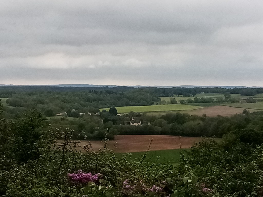Les bois et la forêt ne sont jamais loin ; celle-ci est juste derrière (à gauche sur la première photographie) : on est en lisière de la forêt du Perche et de la Trappe. Elle coiffe un plateau aux alentours des 300 mètres d’altitude. Face à nous, une déclivité qui conduit jusqu’aux ruisseaux de Commeauche et Bouyère. Plus loin, invisibles pour l’heure – mais on les voyait hier en fin d’après-midi – des horizons boisés un peu moins hauts que celui auquel nous sommes adossés (voir photographies ci-dessous).