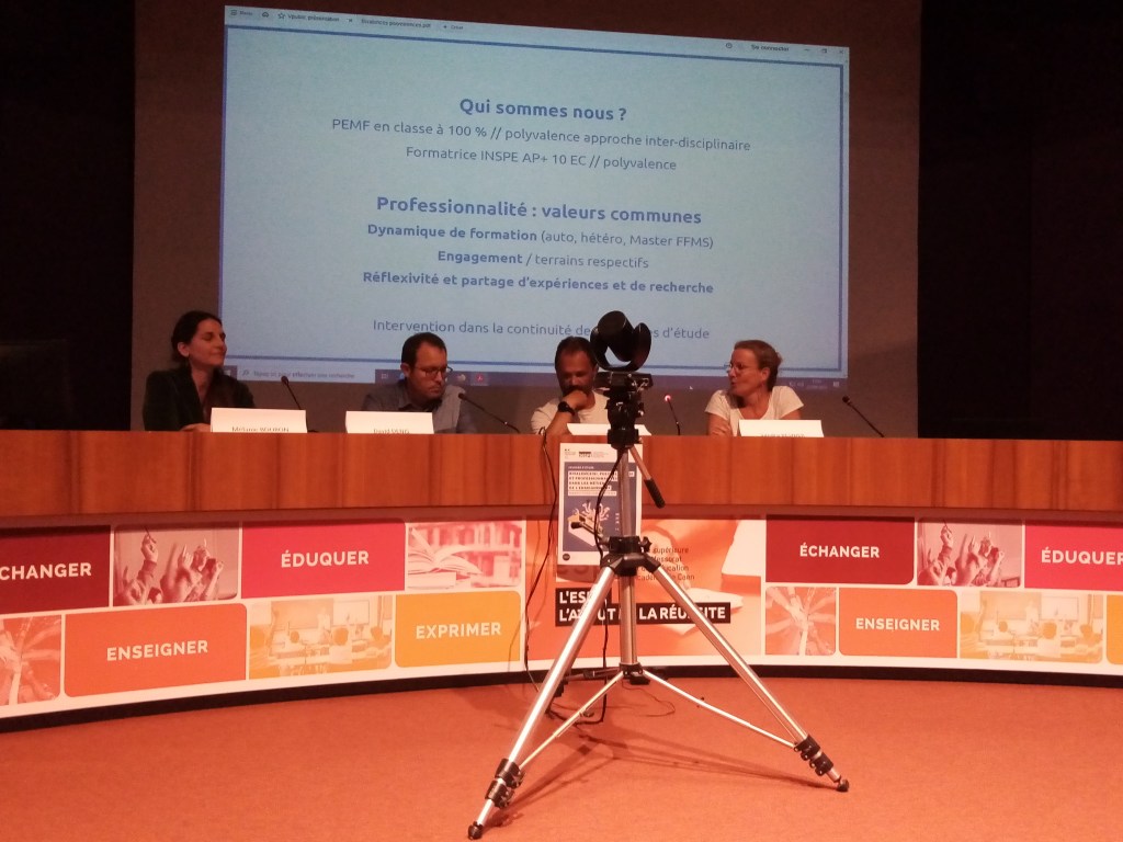Le dernier temps de la journée d’études rassemble Mélanie Bouron (formatrice Inspé Normandie Caen), Sandra Besnier, David Denis et Samuel Moreau (PEMF) avec des approches croisées de la polyvalence dans le Premier Degré.