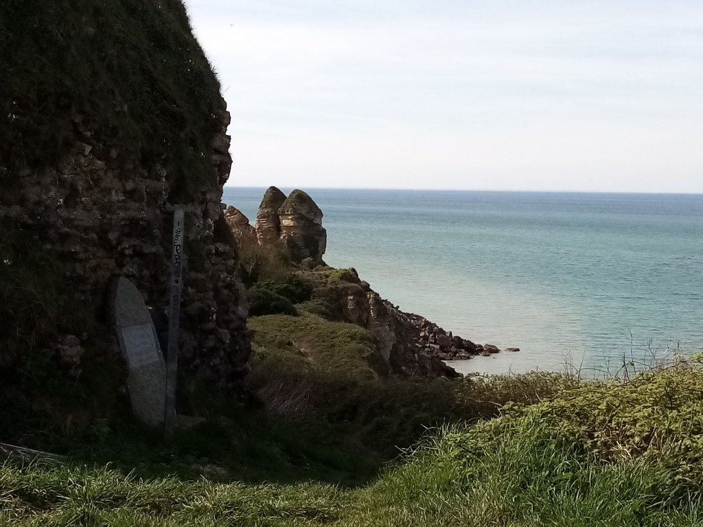 A Longues comme ailleurs sur les côtes normandes, les falaises « reculent ». Un autre paysage, plus bas que le précédent (65 mètres en-dessous) et qu’on vient aujourd’hui moins voir que lui, est aussi marqué par les ruines.