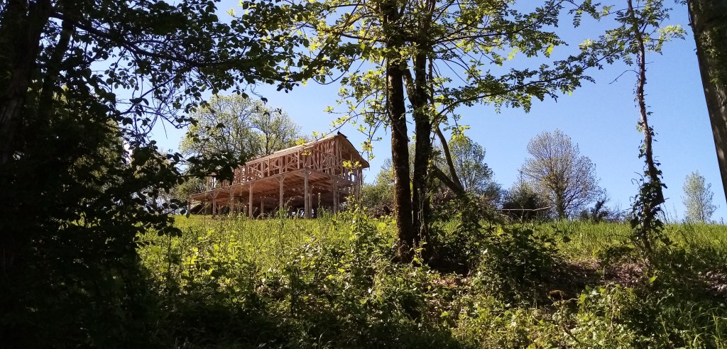 Une maison en bois en cours de construction dans le hameau de Vialans