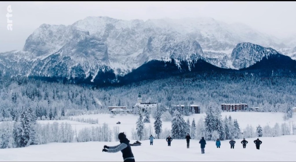 Paysage de montagne. D’abord vue d’un balcon pour super-riches (on pense à Davos) où elle est maintenue comme à distance depuis des chaises longues, la montagne se rapproche et devient paysage au moment où France se promène avec ce jeune homme, pour, peut-être, une vraie histoire.