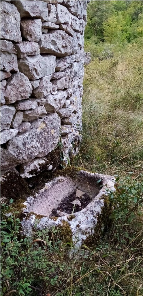 Ces points d’eau étaient complétés de nombreux abreuvoirs taillés dans des blocs de calcaire. En voici deux exemplaires.