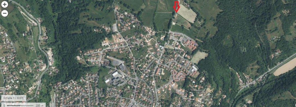 Vers l’Est : les bois de Bataillé, un chemin le long du stade conduit vers un site de VTT. Des voix au lointain nous disent qu’il est pratiqué ce bel après-midi. Forme de la ville aussi, ces espaces de récréation qui résonnent dans les bois proches. Au-dessous des bois, il faut imaginer le versant de la vallée du Célé que l’on ne voit plus. Et on n’entend plus non plus le bruit sourd des automobiles qui serpentent de l’autre côté du Célé sur le versant qui conduit à la zone commerciale de Capdenac-le-Haut ;