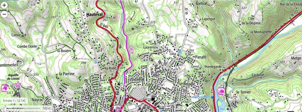 La forme contour est une abstraction visible sur les cartes. Depuis la limite Nord du vieux centre de Figeac (place du Foirail), nous avons exploré les quartiers de la colline de Bataillé, puis des hauts de Panafé. Les zones pavillonnaires ont escaladé ces collines à partir des années 1960. Les derniers développements en cours, à Panafé, repoussent la forme-contour vers le Nord.