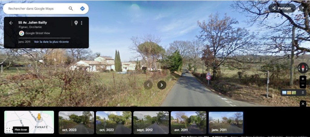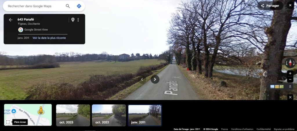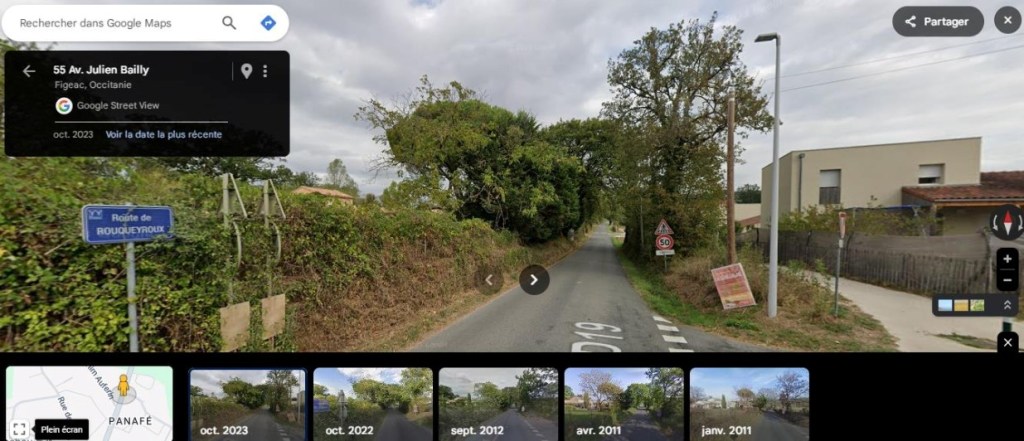 Les globes virtuels montrent les changements de perception depuis la RD19 (voir ci-dessous des captures d’images sur Street View en 2011 et 2023).