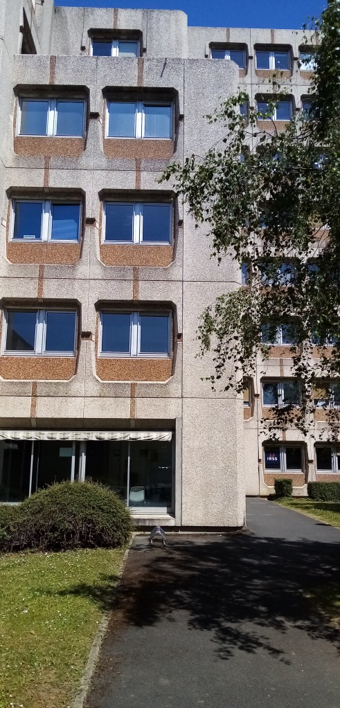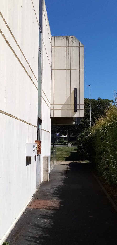 Discrète, l’architecture du péricentre n’en est pas moins intéressante. On peut aimer (j’aime) ces formes géométriques sans qu’elles ne soient raides, ces perspectives courtes ménagées pour stimuler les perceptions chez les piétons sans qu’elles ne les enferment (et elles protègent du vent sur ce plateau), ces surfaces à parement différencié sans être compliquées, ces coins de pelouses avec arbres qui peuvent fugacement évoquer les terres auxquelles elles se sont substituées lorsque la ville a poussé vers le Nord.
