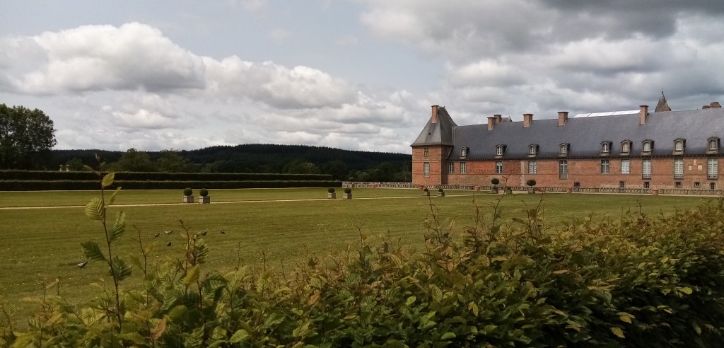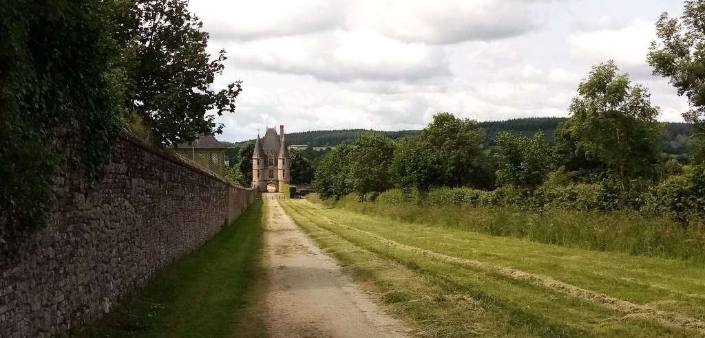 A Carrouges, le château des Le Veneur est beau avec ses murs de briques et de granite, ses fossés emplis d’eau, ses jardins et ses grilles à la française. Mais je lui ai toujours préféré les prairies humides et la silhouette d’une forêt proche que l’on voit depuis le jardin situé au Sud-Ouest.