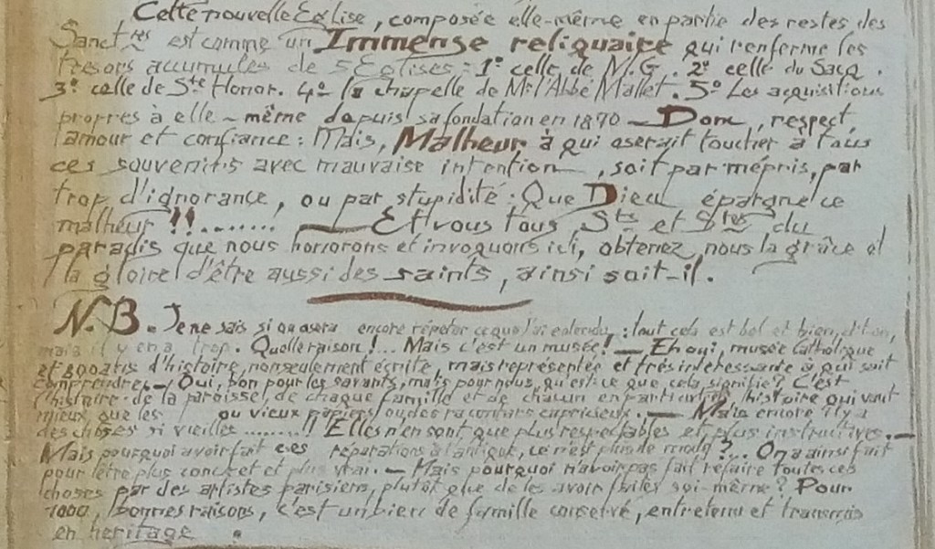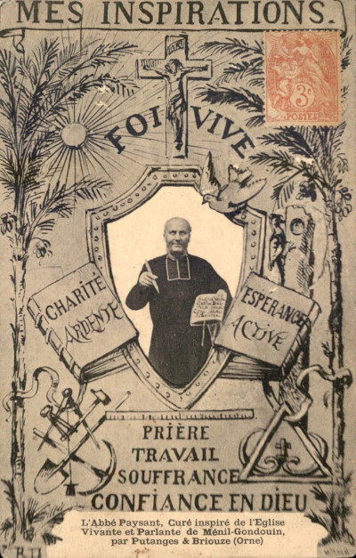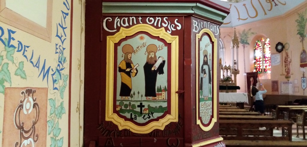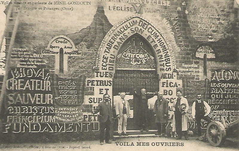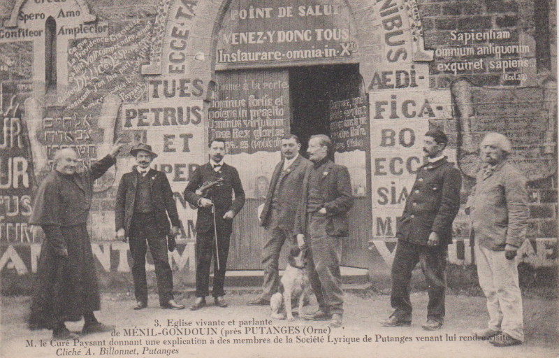 Il parlait déjà beaucoup par l’intermédiaire des murs. Et de nombreuses cartes postales le montrent toujours parlant, expliquant l’iconographie édifiante dont il est l’orchestrateur. Elles ont été la source principale utilisée pour restaurer l’église.
