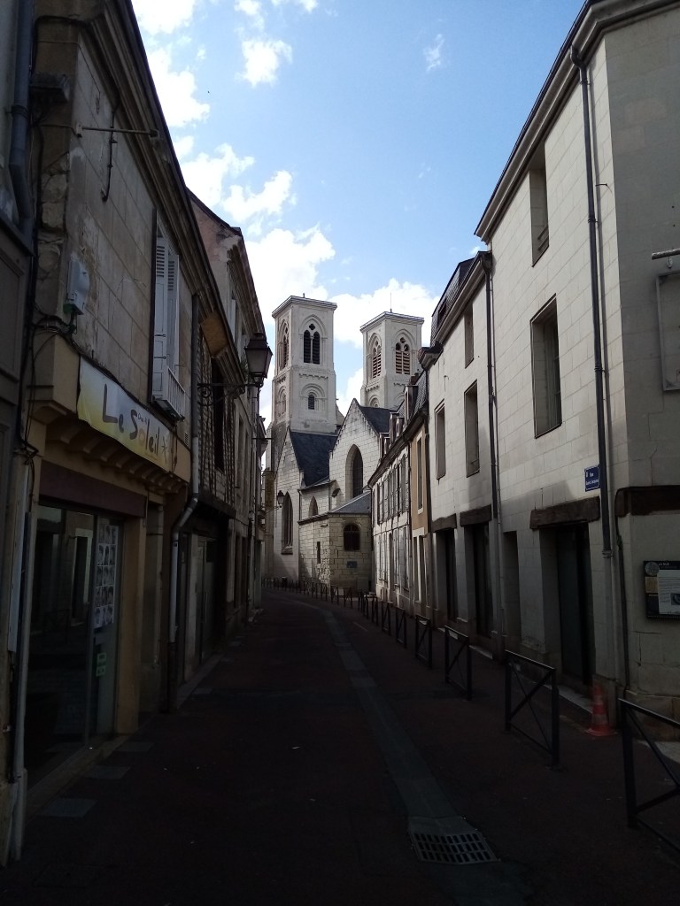 La route d’Espagne se poursuivait après Tours pour les pèlerins qui entrant dans Châtellerault par la rue Bourbon (et y entrent toujours comme nous avons pu le voir depuis la terrasse du salon de thé) tournaient rue Saint-Jacques vers la cathédrale du même nom.