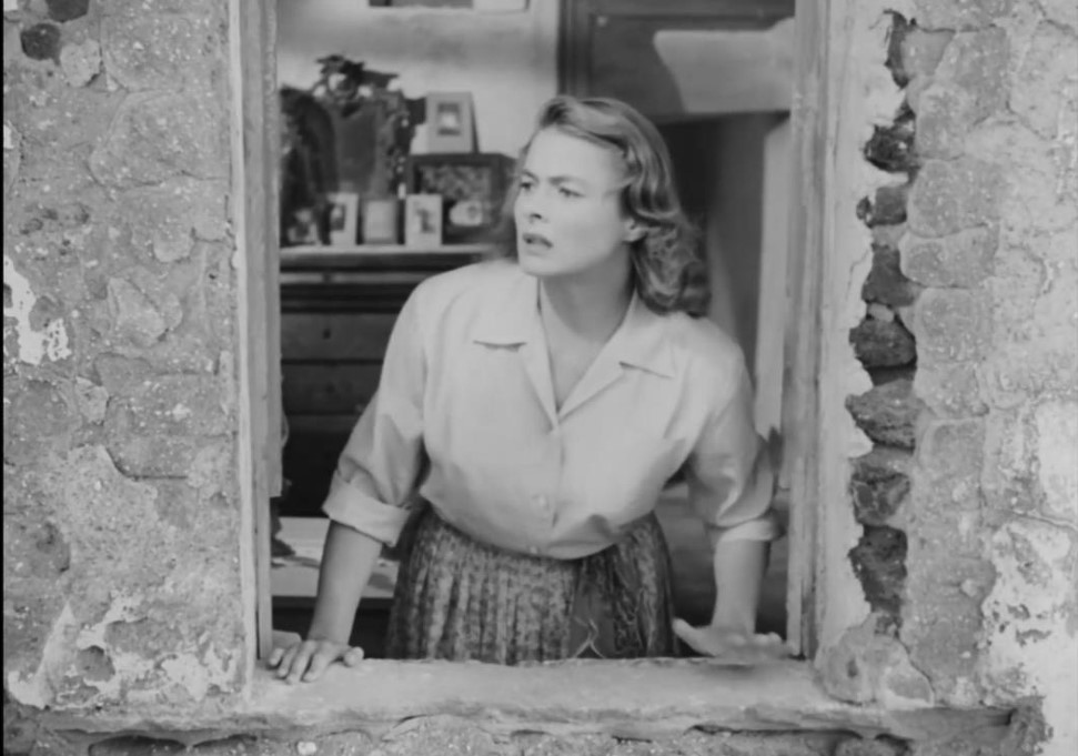La question n’est pas de savoir si Karin échouera à Stromboli le village qu’elle a fui ou, d’une autre manière, à Ginestro où elle attendrait un Mario aux intentions incertaines. Elle – ou Ingrid Bergman – est ce visage et cette silhouette surnaturels au-dessus du monde des humains,